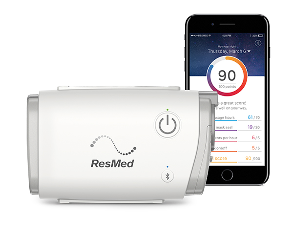 Le nouveau CPAP de voyage AIR MINI fonctionne avec trois différents modèles de masques. Dans le cas ici d’un masque intra-narinaire, le AIR MINI fonctionne avec une trousse d’installation de masque P10 spécifique au modèle. Il comprend : le circuit respiratoire AIR MINI, 1 filtre échangeur de chaleur et d’humidité “HumidX” et 1 “HumidX Plus” ainsi que le module d’alimentation électrique 20W.